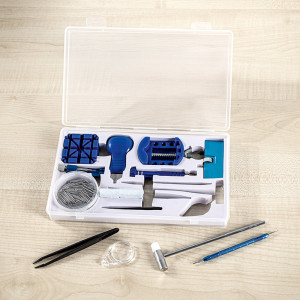 • Komplett-Set inklusive Präzisionsschraubendreher, verschiedenen Bits, diversen Uhrenstangen, Armbandhalter, Lupe, Federstegwerkzeug mit Skala u.v.m