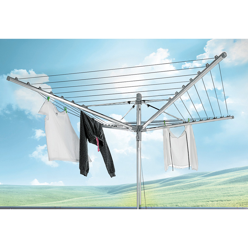 • Mit automatischem Leineneinzug für saubere Leinen und saubere Wäsche – Leinen liegen schmutzgeschützt in den Tragarmen