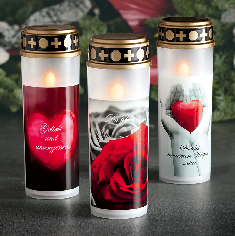 • Warmweißes, flackerndes LED-Licht