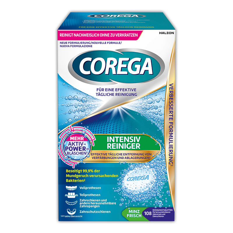 • hilft Verfärbungen zu entfernen und das Zahnweiß der Prothese zu erhalten