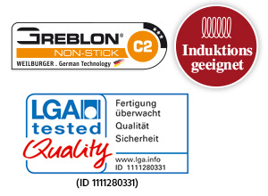 backofenfest bis ca. 150 °C, jeweils mit Softtouchgriff