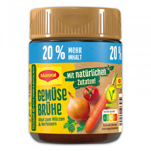 • Gemüse Brühe je 143 g, ergibt 8,4 Liter (1 l = –,18)